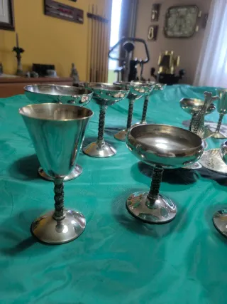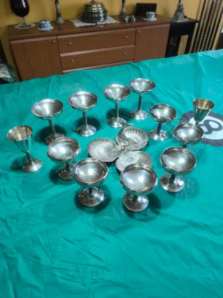 Copas y fuente de metal alpaca marca ángulo