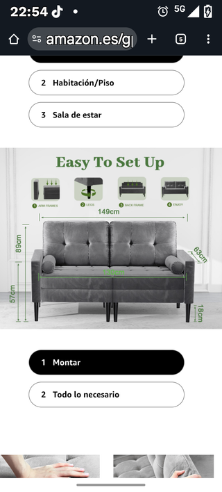 Sofá de dos plazas con un tacto muy agradable y dos cojines a juego. Sofa Moderno de Mediados de Siglo, Terciopelo Sofás Pequeños para Sala de Estar/Apartamento/Dormitorio (Gris Fresco) El sofa 2 plazas de tela utiliza tela de lino de alta calidad y tela de terciopelo agradable para la piel, suave al tacto, Profundidad del asiento50 centímetros Altura del asiento50 Centímetros Límite de peso350 Kilogramos Usos recomendados para el productoSala de estar, Apartamento, Pareja - Diseño moderno y elegante. - Acolchado confortable. ACTUALMENTE lo tengo empaquetado em 2 cajas grandes guardados y listos para transporte. Nunca lo usé