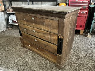 Cajonera antigua de madera y mármol