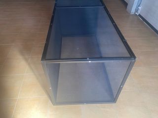 Terrario con rejilla de ventilación vertical. - Estructura metálica. - Paneles de malla para ventilación.