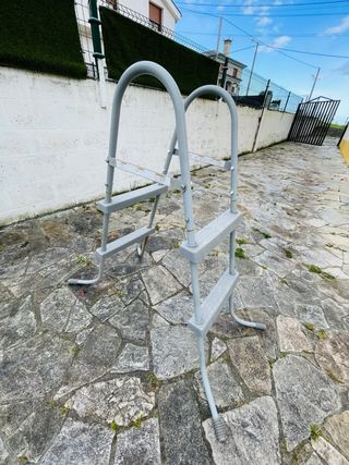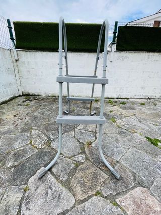 Escalera para piscina con estructura resistente. - Fabricada en metal, plástico y goma. - Diseño en color gris.(SE ENCUENTRA EN BURELA)NO SE ENVIA