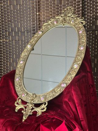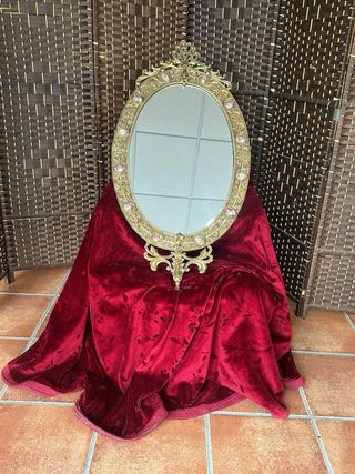 *Espejo ovalado de estilo Rococó / Luis XV, realizado en bronce fundido, con acabado dorado. Presenta rica ornamentación en relieve y pátina natural, con restos de verdín propios del envejecimiento del bronce, visibles en algunas zonas. *Incorpora aplicaciones de porcelana industrial con decoración mecanizada, originales de época. Pieza no magnética, de gran peso, correspondiente a una fundición de calidad. *Fabricación europea, datable en el primer tercio del siglo XX (ca. 1900–1930). Objeto decorativo de gran presencia y carácter. (Se realizan envíos a nivel nacional e internacional) vintage antiguo antigüedad