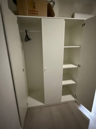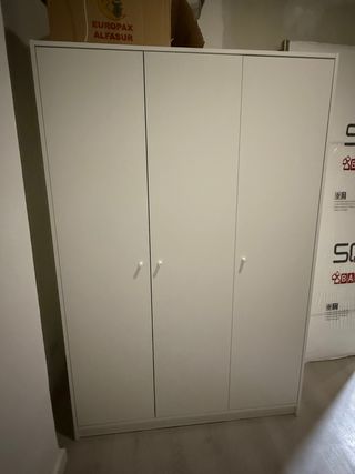 Armario de tres puertas en color blanco. - Medidas: 1,17 m de ancho x 1,75 m de alto x 0,55 m de fondo. condición a recoger montado antes del 30 de diciembre
