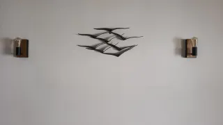 Conjunto de 20 perchas diseñadas para tiendas. - Fabricadas en metal cromado. - Color plateado. - Diseño de brazo inclinado. - Mural de 8 pivotes de 40cm.