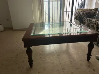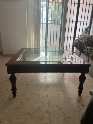 Mesa centro madera y cristal artesanal