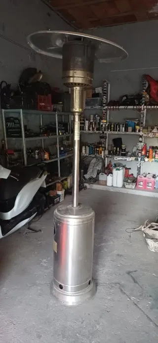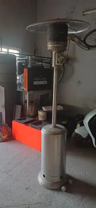 Estufa de gas para exteriores, ideal para patios o terrazas. - Diseño moderno y elegante. - Fabricada en metal resistente.