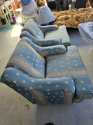 Sillones vintage tela azul y beige