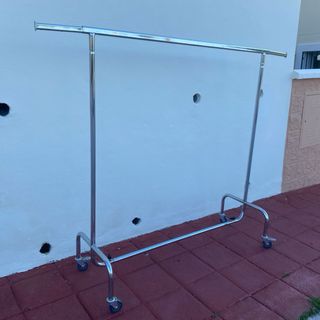 Perchero de acero cromado, ideal para organizar tu ropa. - Estructura resistente y duradera. - Base con ruedas para fácil movilidad. - Diseño moderno y funcional. La estructura es de acero cromado con una varilla extensible de 300 mm en cada lado. Dimensiones externas Abierto: L 2100 mm x P 530 mm x A 1520 mm // Cerrado: L 1500 mm x P 530 mm x A 1520 mm