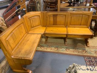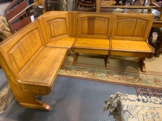 Banco rinconera de madera de pino, ideal para comedores o cocinas,medida banco 181 x 139 x 91 cm alto total - Diseño de esquina,se puede cambiar el sentido de lado ,, - Acabado en madera de pino madera maciza ,,medida mesa 139 x 88 x 77 cm alto ,se vende el conjunto de banco mas mesa mas dos sillas por 220 euros ,transporte opcional