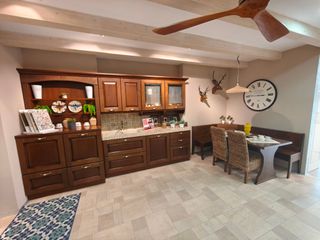 Se vende cocina de exposición de tienda. - Muebles en color haya y verde con tirador dorado en canto puerta, con encimera silestone, rinconera en escuadra, botellero panero, rinconera columna y escobero despensero, campana cubo de cristal. - Cocina en blanco con uñero y madera entablillado con encimera y frente en porcelanico negro, con placa de induccion y fregadero de resina bajo encimera, mueble fregadero extraible con cubos, rincón con cestas extraibles, botellero aceitera extraible y mueble extraible con cajones interiores. -Cocina verde menta y gris con gola negro y encimera con electrodomésticos, frigo y horno en acero,...