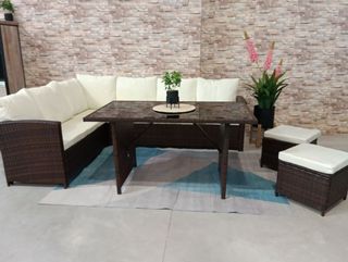 OPORTUNIDAD. Rinconera de ratan pe en gris o marro + mesa y 2 puff Garantia de 3 años directo del fabricante Incluye cojines Facil montaje