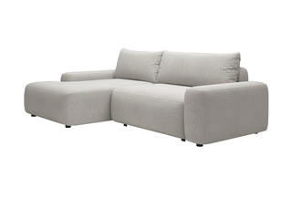 Sofa cama rinconero de tela, disponible en dos colores: beige y gris. Es un sofá cómodo y espacioso, ideal para cualquier salón. - Incluye chaise longue. - Mecanismo de cama fácil de usar. - Perfecto estado.