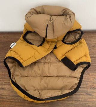 Chaqueta acolchada para perro, ideal para protegerle del frío y la lluvia. - Diseño reversible con dos colores. - Aberturas para las patas y cuello. - Cierre de velcro ajustable. - Incluye bolsa para guardarlo. - Comprado en el Corte Ingés, con etiqueta y sin estrenar. Talla: 40 cm