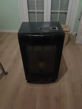 Estufa catalítica de diseño moderno. - Fabricada en metal y plástico. - Color negro.