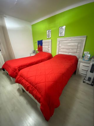Se venden dos camas pequeñas completas, cada una con su somier y colchón, más dos mesitas de noche. - Estructura de madera. - Colchones cómodos.