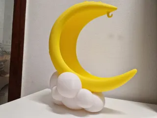 Adorno de luna con nubes, ideal para instalar en la entrada de casa para dejar llaves, anillos, collares o usar como decoaracion a habitacion infantiles, tiene la opcion de colgar una lucita, o lo que usted prefiere - Diseño de luna creciente. - Base con nubes. - Material resistente.
