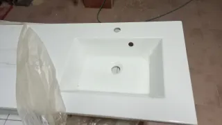 Bancada de fibra con pila integrada. Ideal para baños o cocinas. - Color blanco. - Diseño moderno y funcional.