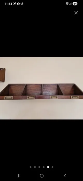 Estantería de pared con varios compartimentos y detalles metálicos. - Fabricada en madera maciza. - Diseño de pared con divisiones. - Placas metálicas decorativas en cada compartimento. Grande: 90cm ancho x 20 profundo x 20 alto Pequeño: 60cm ancho x 20 profundo x 20 alto
