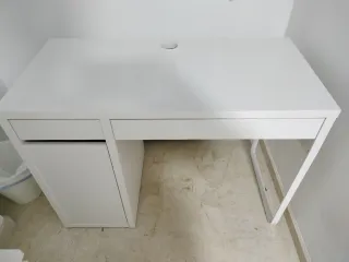 Escritorio Ikea blanco. Tiene la parte superior con los desperfectos de la foto pero mínimo.
