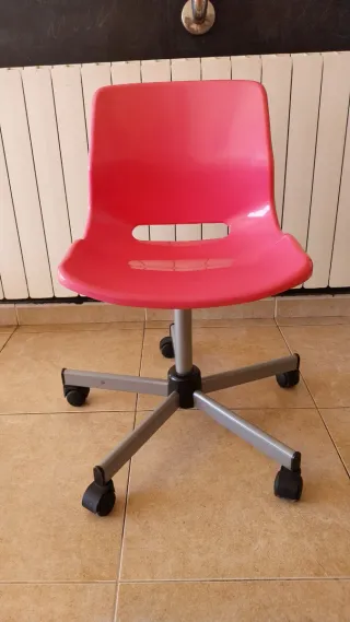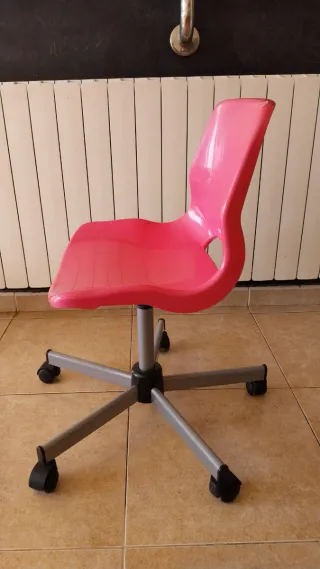 Cadira de color rosa amb rodes