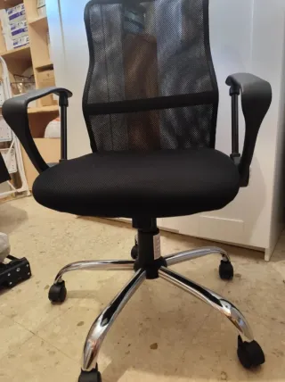 Muy poco uso, como nueva. Es muy cómoda, ya que el asiento es acolchado, la altura se puede ajustar y tiene apoya brazos; además, el respaldo tiene varios puntos a favor: -es de malla, con lo cual transpira y no suda la espalda -se puede dejar fijo o basculante (así descansa mucho mejor la espalda, en mi opinión) -tiene forma ergonómica que se adapta a la espalda. Soporta un peso de 110kg aprox y las medidas son 59,5-95,5/105-55cm (ver fotos para más detalles). No tengo el embalaje, se entrega montada.
