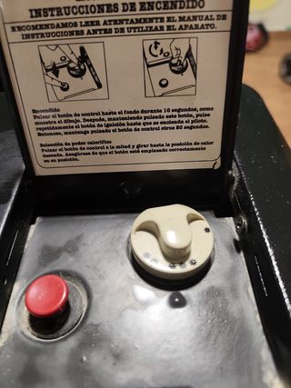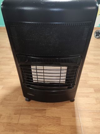 Estufa de gas en buen estado. Ideal para calentar espacios. - Diseño moderno y funcional. - Fácil de mover gracias a sus ruedas.