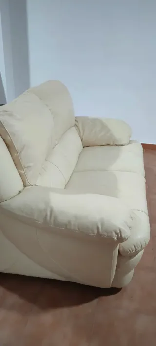 Sofá de dos plazas de alta calidad. - Tapicería de piel. - Color beige neutro. - Diseño moderno y confortable. Se regala mesa baja de alta calidad