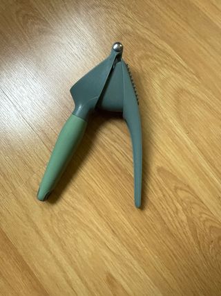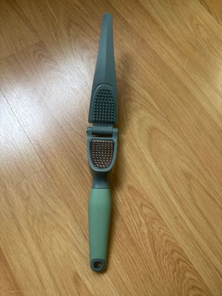 Utensilio de cocina para prensar ajos. - Mango ergonómico para un agarre cómodo. - Diseño resistente y duradero.