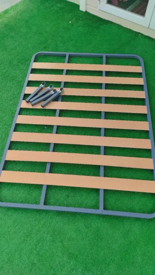 Somier metálico y láminas de madera. - Medidas - 190 x 135 cm - Patas incluidas .