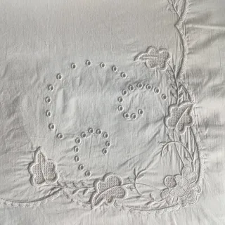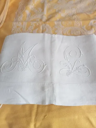 Sábana antigua bordada con iniciales