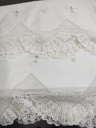 Sábanas y fundas antiguas con puntillas