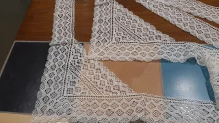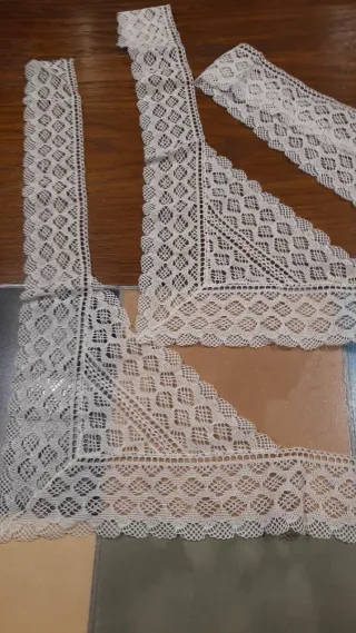 Preciosas puntillas de encaje, ideales para decorar sábanas o cualquier proyecto de costura. - Diseño intrincado y delicado. - Borde festoneado. - Perfectas para un toque vintage. - 2 esquinas, están como nuevas , medudas: lentitud total 3 metros y + 1 metro, ancho 6,5 cm
