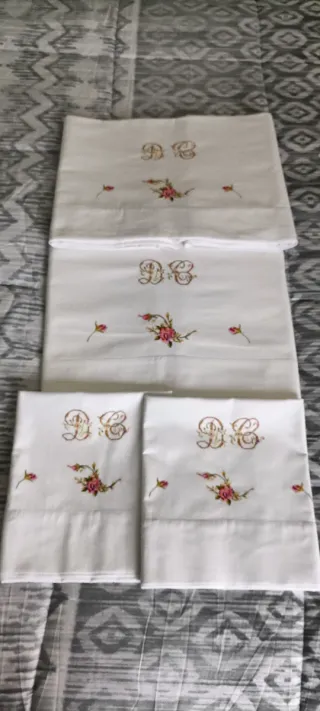 Juego 2 sábanas encimeras algodón bordadas a mano