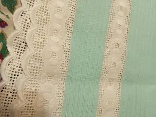 Juego de sabanas antiguas de algodón en tono verde claro con puntilla blanca. Para cana de 135 cm. Incluye sabana bajera, sabana arribera y almohadón.