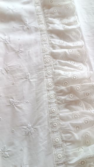 Sabana bordada a mano,romantica, ideal cama rústica. Tamaño cama doble de 135 a 150 cm No dispongo de funda almohada ni bajera