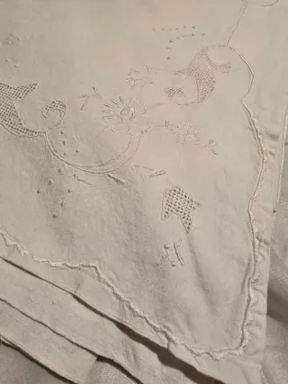 Preciosa sábana bordada de algodón, Es delicada y luce un bordado de flores. - Bordado floral - Acabado delicado Las medidas son para cama de 135 Tiene alguna manchita de las que salen de estar guardadas porque son muy antiguas de ahí su valor