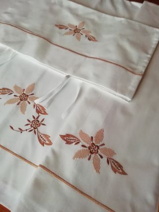 Sábana bordada algodón 100 %. Medidas : ancho 1,56, largo 2,55, almohadón 1,02.