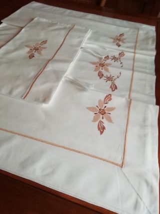 Preciosa ropa de cama bordada a mano. El juego incluye tres piezas. Las sábanas presentan un delicado bordado floral en color rosa, verde y azul. Las piezas están en buen estado, aunque muestran algunas arrugas por el uso y almacenamiento. Ideales para añadir un toque vintage a tu dormitorio. Largo 240cm ancho 152cm