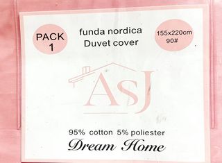 Funda nordica de 155 x 220 cm 95% algodón y 5% poliéster Sabana bajera de 90 x 200 cm 95% algodón y 5% poliéster Sabana bajera de 90 x 200 cm 100% algodón Color: Rosa, como se ve en la foto El producto está sin abrir 5 Euros por sabana/nordica (NO es todo a 5 euros, sino que 5 euros por cada cosa)