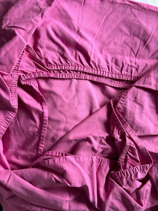 3 sábanas bajeras, algunas más usadas que otras. Las vendo porque hemos cambiado la cama a una más grande. Rosa fucsia, blanco y azul clarito.