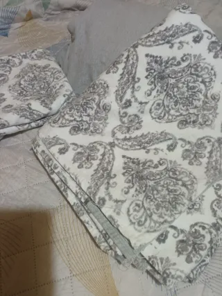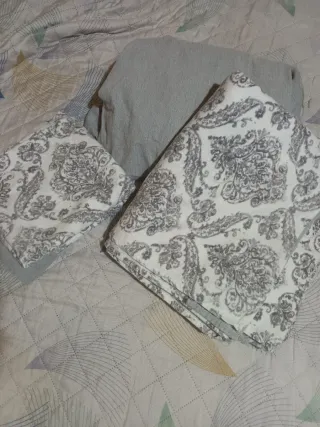 Juego de sábanas con un bonito estampado damasco en tonos grises y blancos. El tejido es suave y agradable al tacto. Cama 90 buenísima calidad - Diseño damasco. - Tacto suave.