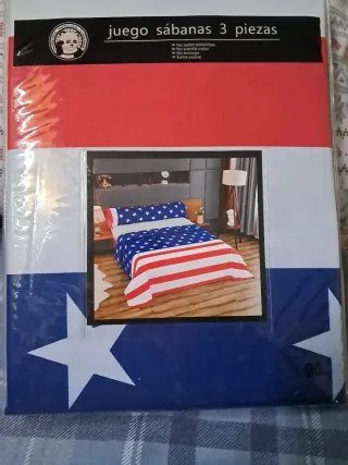 Juego de sábanas con diseño de estrellas y rayas, inspirado en la bandera de Estados Unidos. El paquete incluye 3 piezas. - No salen pelotillas. - No pierde color. - No encoge. - Extra suave.