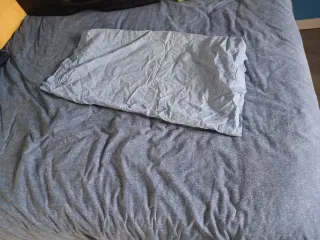 Conjunto de funda nórdica, relleno y fundas de cojines. Color vaquero Por un lado mas claro y por otro mas oscuro. Incluye sabana bajera - Funda nórdica de tela. - Relleno incluido. - Fundas de cojines a juego. Para cana 135
