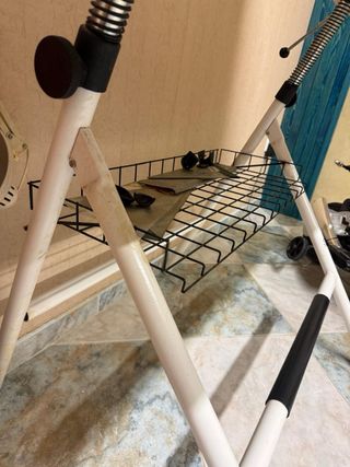 Tendedero grande de color blanco, versátil para usar tanto en interiores como en exteriores y con capacidad para bastante ropa. - Estructura metálica. - Detalles en plástico. En muy buen estado, solo tiene el extremo de una varilla suelto, que tengo pillado con cinta o se puede soldar. Medidas: 77 x 40- 49 cm 🍁NOTA: 👉No sé admite devolución una vez visto y comprado 👉Solo pago en efectivo