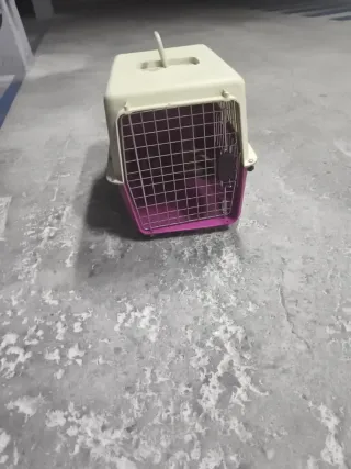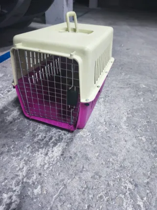 Transportín de plástico y rejilla metálica, ideal para llevar a tu mascota de tamaño pequeño o mediano ( ha viajado en el un Beagle) de forma segura. - Parte superior de plástico rígido. - Puerta frontal de rejilla metálica con cierre. - Base de plástico resistente.