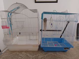 Jaula para pájaros azul y blanca