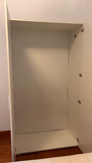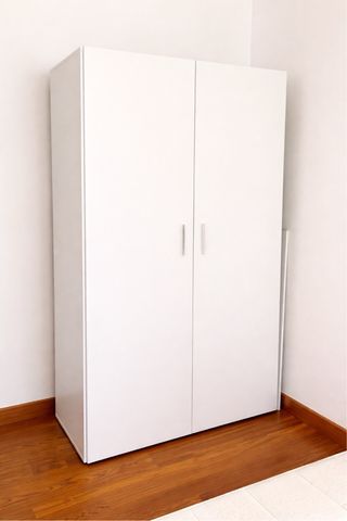 Armario de puertas abatibles nuevo. Usado solo unos meses, lo vendo por mudanza. Me costó 150€ - Medidas: 104 cm de ancho, 191 cm de alto y 53 cm de profundidad. - Acabado en color blanco.