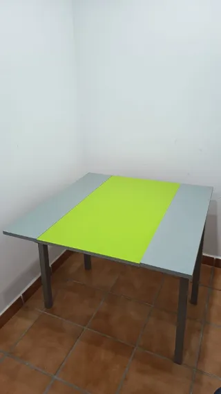 👉Mesa plegable con diseño moderno , funcional y amplia. 👉Mesa plegable para cocina o comedor, el cristal está puesto nuevo hace poco, las alas grises tienen algún roce ,solo necesita apretar algún tornillo ,por lo demás está en buen estado. Parte central en cristal verde, con dos alas en color gris que se pliega y se despliegan hasta hacer la mesa más cómoda para sitios más estrechos o más espaciosos . 🟢Las medidas son las siguientes: 🟢Mesa totalmente abierta 90 x 90 cm. 🟢Altura 75 cm 🟢Parte verde central 90 x 50 cm. 🟢Cada ala gris 90 x 20 cm 🍁NOTA: 👉No se admite devolución una vez visto y comprado. 👉Solo pago en efectivo