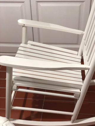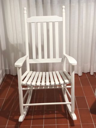 Silla mecedora clásica de madera. Yo la utilicé durante un año para dormir a mi bebé. Como se ve en las fotos, el acabado es blanco y una construcción robusta.