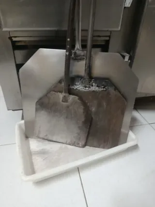 Set de palas para horno, ideales para manipular alimentos. - Materiales de metal y plástico. - Color gris y plateado.